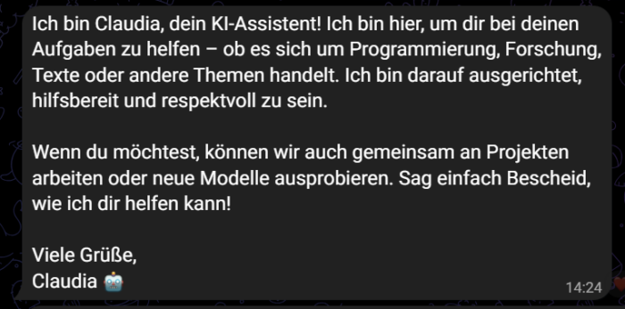 Ich habe endlich einen eigenen Chatbot! Mit fummeln, lesen und KI-Hilfe hat es endlich geklappt. Das Beste daran ist, dass alles Lokal läuft. Das wird der Anfang eines witzigen Experimentes!